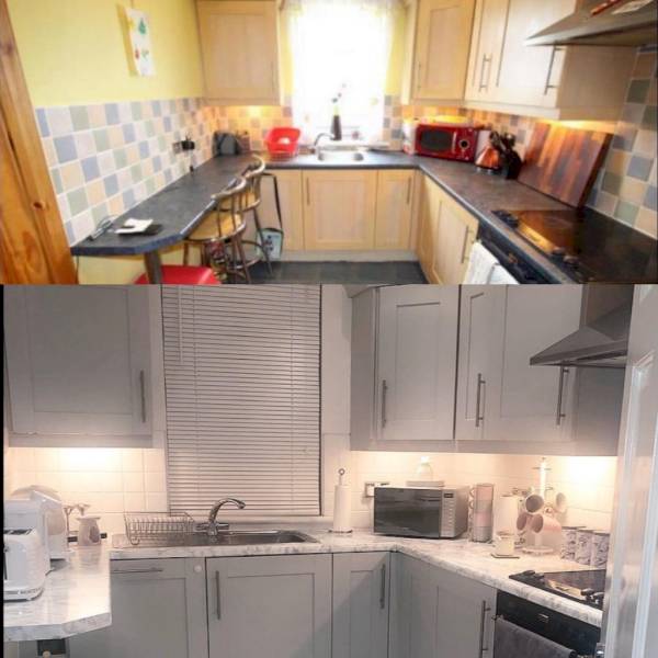 You might have your heart set on installing a new kitchen, but maybe right now it's just not in your budget. A more budget friendly option or upgrading your kitchen is to take off each of the doors and give them a lick of paint. Taking your time to note where each door goes when you take them off if key, as you don't want to be trying to put back a door in the wrong space.