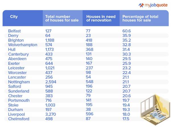 The Top 20 UK Cities with the Most Houses in Need of Renovation: