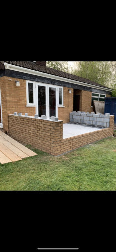 I am a qualified bricklayer and have been in the building trade for 30+years. The work I’ve undertaken in this time range from conservatory base works, Garage conversions, Small extensions, patios, Garden walls & knockthroughs. I’d like to think over the time I’ve been a builder I’m neat and tidy And take a lot of pride in my work and I’m respectful to other peoples property.