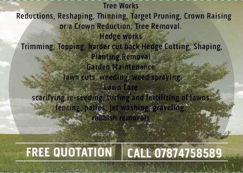 This is a family business that has been running for 7 years friendly advice for all aspects of gardening work trees and hedges we also do rubbish removal and fencing and gravel all ways happy to help free quotations