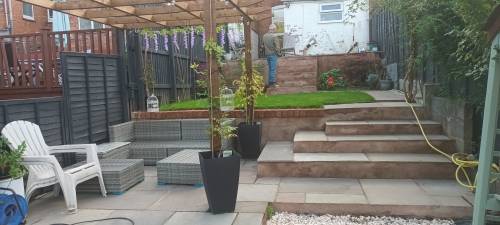 Great job done by Allan. Laid my patio using a mix of my reclaimed slabs and new slabs. Carefully worked out the maximum usage of slabs cutting as needed to optimise usage. Arrived on time and worked constantly throughout the job, always communicating the progress and understanding of the project. On completion left the site clean and tidy, jet washed the area and removed all waste. I would recommend AJ Garden Solutions without hesitation for value and excellent work plus Allan is an approachable person which is of great value.