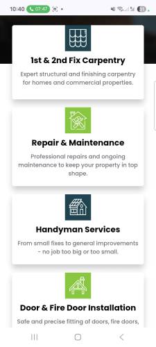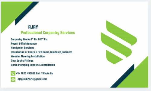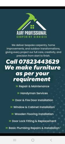 We are specialized in al kinds of Carpentry Work like Doors with frames,hinges,lock or latch and architrave, wardrobes installation with shelving, bed installation, windows installation, carpet fixing on staircase, assembling and deassembling furniture items ,flooring with laminated or vinyl, wooden cladding for for external walls installation and fencing for boundaries and garden decor installation and finally all kinds of Property maintenance with objects made with wooden we deal in only quality products and quality finish interior decorations.