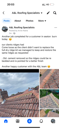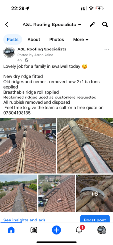 A&L roofing and waste specialistshappy with the service. Came when promised to complete the main part of the work needed , but took a little longer to correct a small part which needed tidying, otherwise would have been 5/5