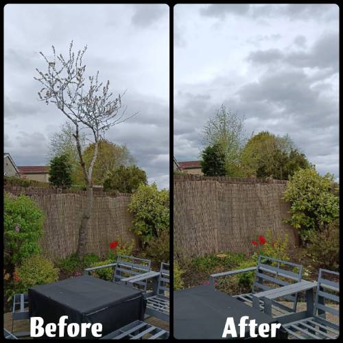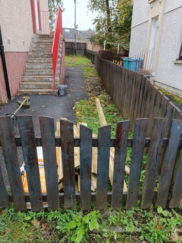 Did most of the job required. Some bits of wood still attached. Cleared away the rubbish and offered to take away more than was required
