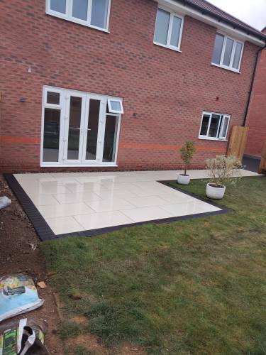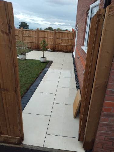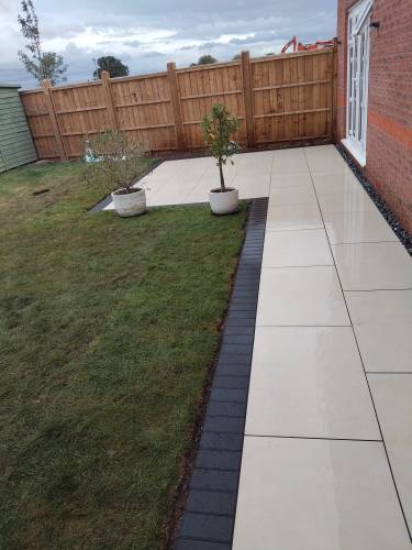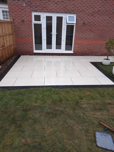 I’m pleased to share that James and Max have laid my porcelain patio and it looks great. The patio and adjacent path cover 16m squared from digging out the old patio to laying the new slabs in under a week. They work well as a team, tidily and professionally and the price was very reasonable too.
