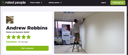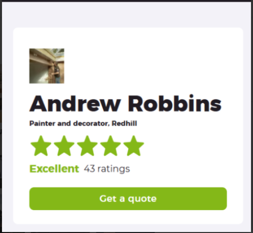 Andrew RobbinsAndrew Robbins , painter and decorator did a brilliant job for me. He went the extra mile and did more than was expected. I would use him again. I would post these comment on your web site but it is not obvious how to do that task.