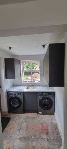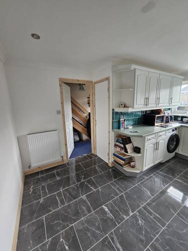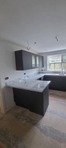 Looks great very pleased with finished result, big job nicely done. Took a long time as many unforeseen problems were unearthed at every turn however Joe solved them very well. It did cost more because of this, it was a big stretch to my future refit plans. Joe also laid new flooring and new fire hearth he really does the whole packages thanks Joe and young Charlie seems a bit quiet without you, over the last 7 and a half weeks good luck for the future kind regards Sylvie Pettitt🙂
