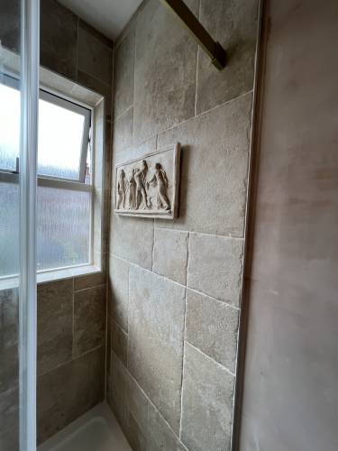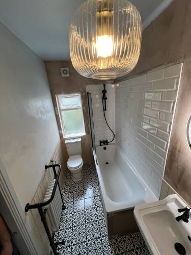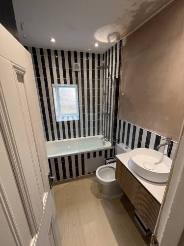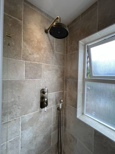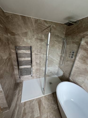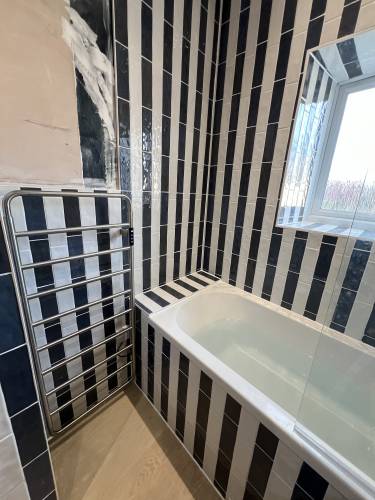 On time ,very knowledgeable,great job completed,tidy would highly recommend brilliant tiler,