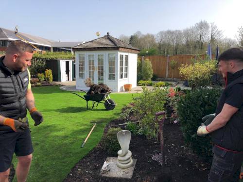 The lads were polite n friendly , got stuck in , and did a good job and i am very pleased , also will be returning every few weeks to maintain my front garden .