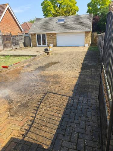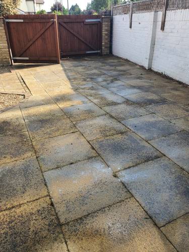 Limpeza de Pátios com Jet Wash: Limpeza profunda de pisos, paredes e calçadas, removendo sujeira, manchas e musgo.