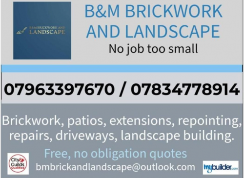 B&M Brickwork and Landscape have undertaken multiple jobs including, but not limited to; extensions, brickwork, repointing, driveways (paved and loose surface), groundwork, foundations, landscaping and retaining walls.