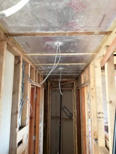 Stud partitioning, plaster boarding and ames taping.