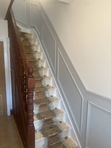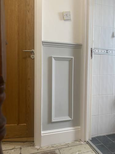 Painting and decorating, installation of skirting boards, panelling and hanging doors.
