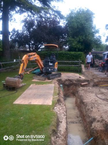Septic tank drain field. Andy & Chris are professional & hard-working. Kept me updated along the process with photos. Took great care with clearing up afterwards. A pleasure to do business with. Would use again.