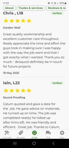 Reviews can only be left by customers who posted a job on MyJobQuote and were contacted by this tradesperson.