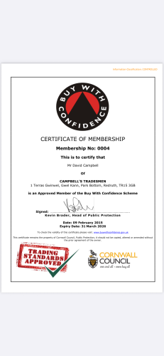 Trading Standards Approved, Membership No 0004.