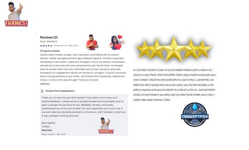 really nice and reliable. Cristian arrived on time and changed the tap for me. Would come back to him if needed