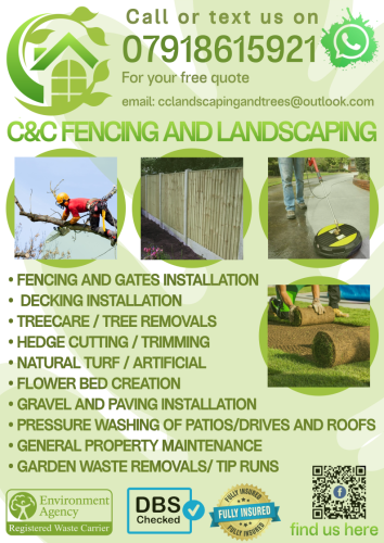 We at C&C fencing & landscaping pride ourselves in being a local provider of a large range of services throughout Somerset/Devon for your garden. From trees, to fencing and decking. You name it we've got you covered! we strive for your satisfaction.