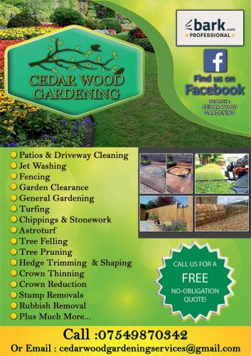 Cedar Wood GardeningSam completed the job to my satisfaction, working quickly and tidily. I would happily employ him again.