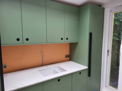 Kitchen Install. I can say that Kris (and his son) worked extremely hard and adapted to problems in order to progress the job. The price quoted was reasonable and I would recommend Kris for kitchen renovations etc