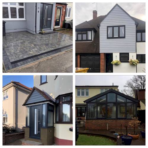 Doors, windows, conservatories, flat roofs, fascias, guttering and cladding, block paving, decking and artificial grass.