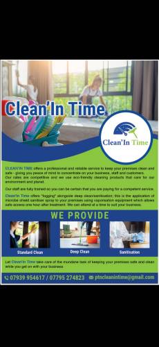 Clean'In Time were brilliant. Petra was good at communicating, offered a competitive quote and did the job at a very high standard. I am pleased with their work and would recommend them for business.
