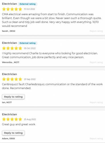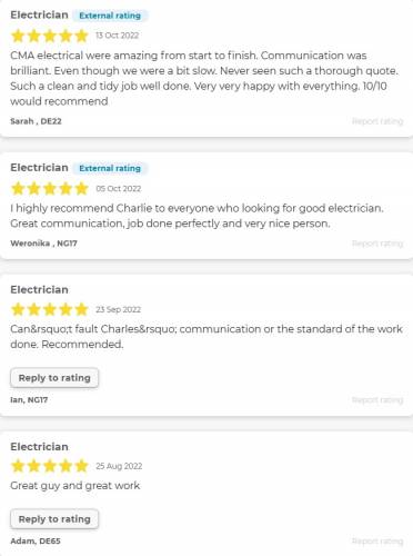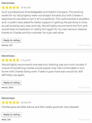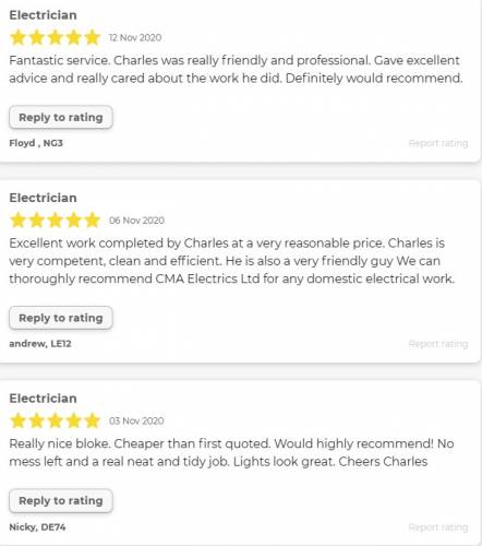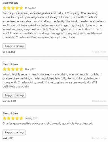 CMA Electrics are industry trained and qualified domestic electricians based in Derby. Our mission statement is “to help all our customers by providing the most affordable prices and service while also maintaining the highest level work, friendly workmanship and customer service”. Our philosophy is simple……treat all customers how we would want to be treated ourselves!