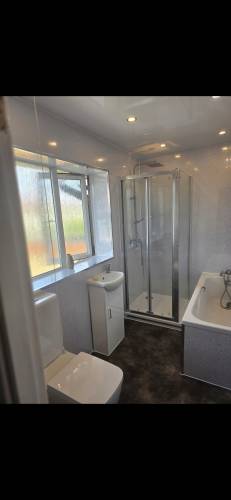 Here was a complete refurbishment of bathroom with old corner bath removed plus sink and toilet and the whole room repainted with gloss to the door and window sill, New pipework installed and a substantial walk-in electric power, sink vanity unit and toilet fitted. Plus a l.e.d. ceiling light. All work completed within agreed time and at a competitive price, fully certificated. Leaving a very satisfied customer.
