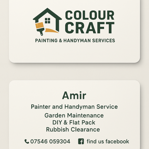Colour craft , painting and handyman serviceI am pleased to provide a reference for Imir, who carried out a combination of painting and garden work for me. The painting work was completed to a good standard, with careful preparation and a clean, even finish. In the garden, Imir was equally diligent – he worked efficiently, took care to understand what was needed, and delivered great results that improved both the appearance and usability of the outdoor space. Imir was reliable, punctual, and easy to communicate with. I found him to be trustworthy and committed to doing the job. I would not hesitate to recommend this hard working young man to others.