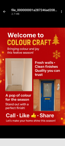 Colour craft , painting and handyman serviceAbout Our Reviews: The reviews contained on this page have been submitted by users of our service who have had a job completed by a verified trade member. We operate a closed loop feedback system which protects our users from fake reviews. To understand more about our reviews process, please visit our Reviews Policy.