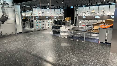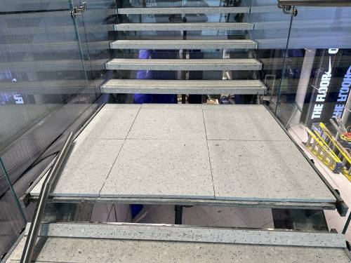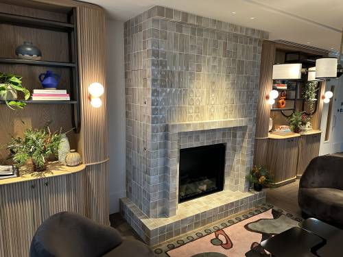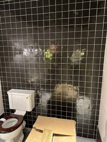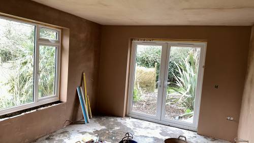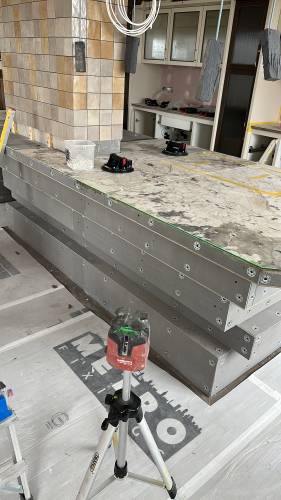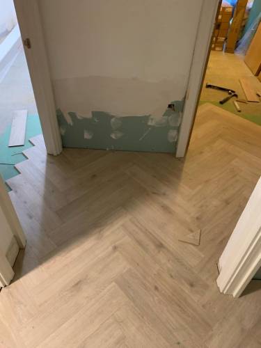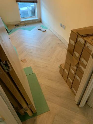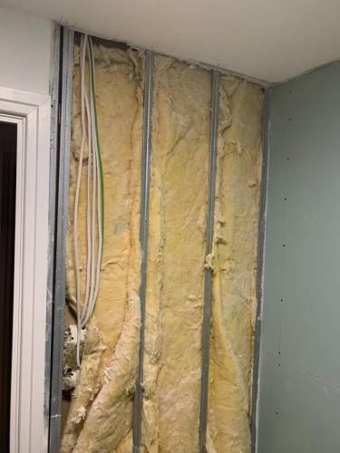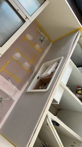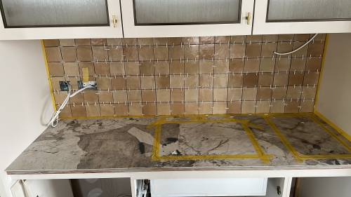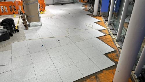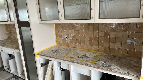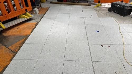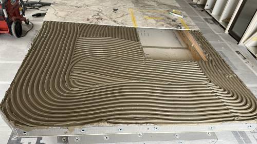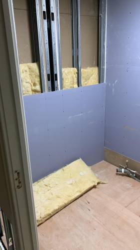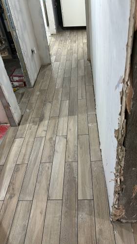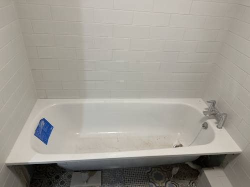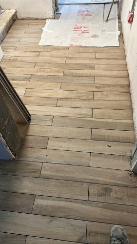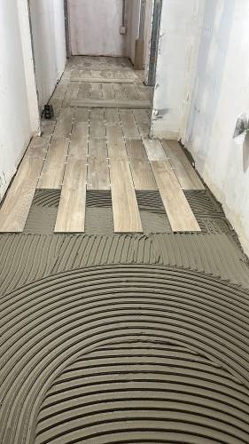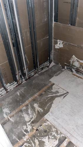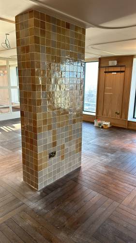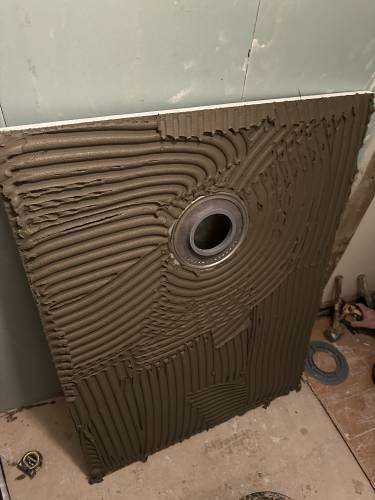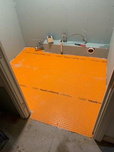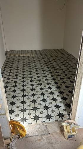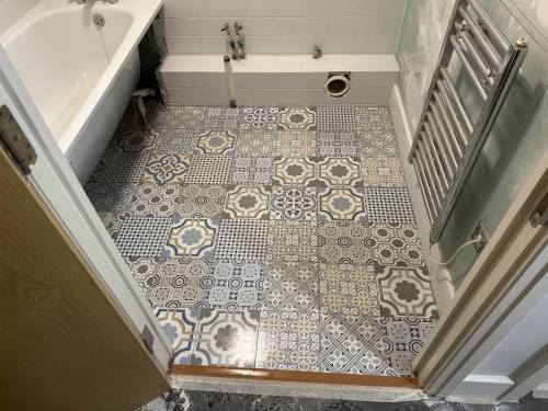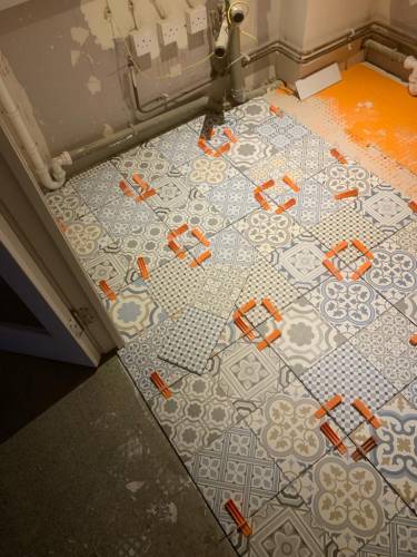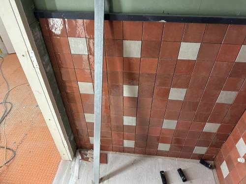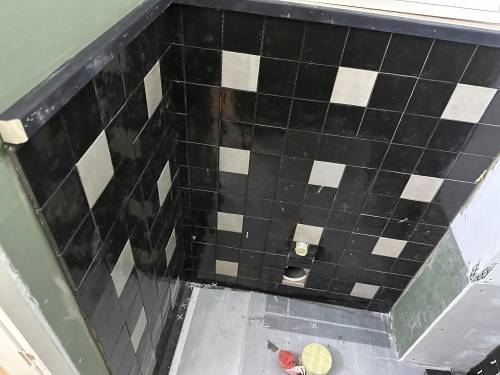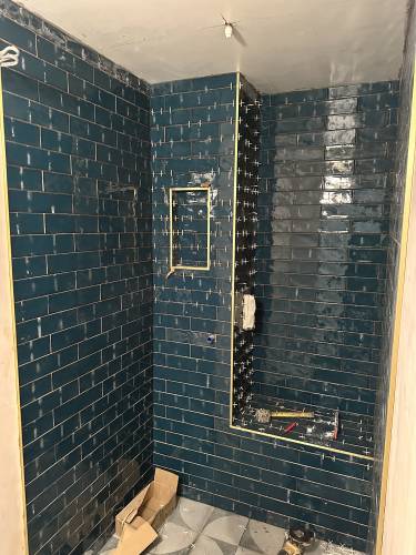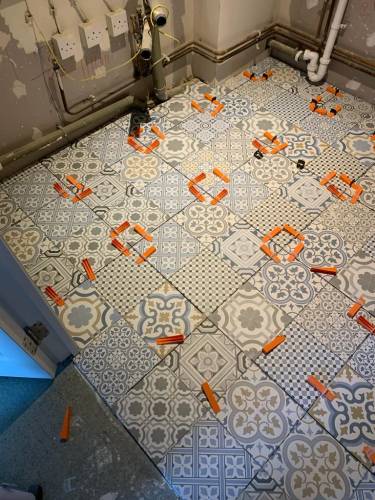 Tiling walls and floor.