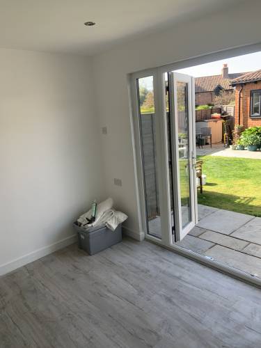 none of the electrics work properly now the false wall has mold as not sealed the plastering cracked and was terrible the floor has lifted and not fitted correctly and never wanted to put things right