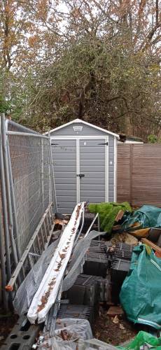 Lay slabs and erect 6x3 shed