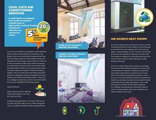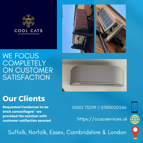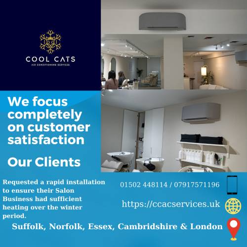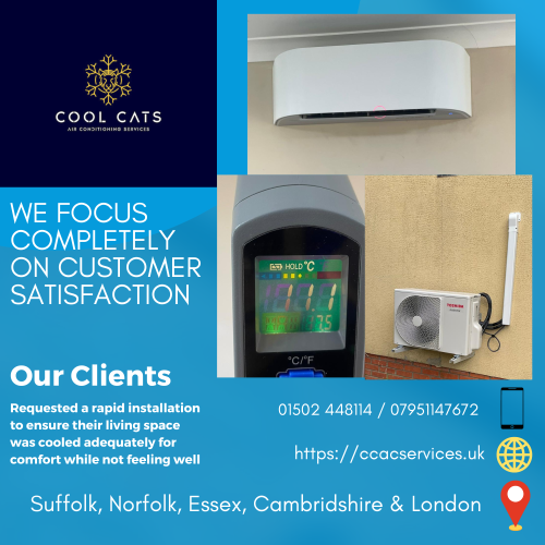 Cool Cats Air Conditioning Services is a top tier heating, cooling and renewable energy company in located Lowestoft. We specialize with installation of bespoke cooling and heating solutions for domestic and commercial customers.