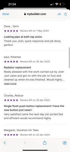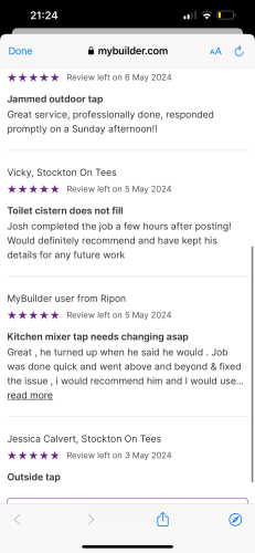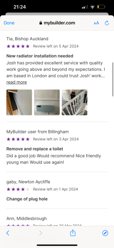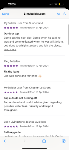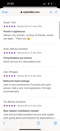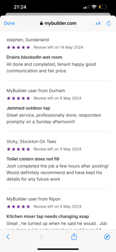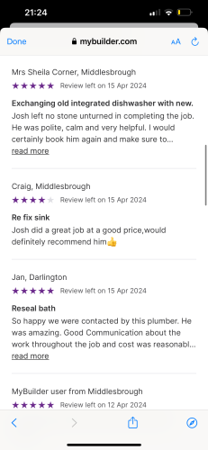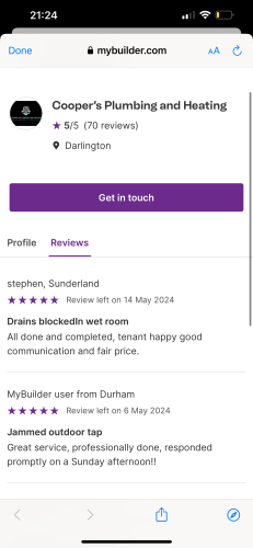 Welcome to Cooper’s Plumbing and heating- I am a fully qualified plumber providing Same day job attending if urgent. Available for any plumbing needs around the North east where I take pride in my work and always give 110% to get the job finished to the highest standard.Fully public liability Insurance. 24/7 emergency call out available Thank you. Check my photos for my job reviews as I’m know to myjobquote.