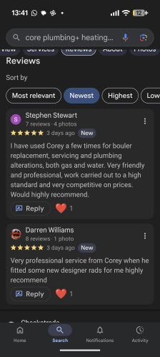 Core Plumbing+ HeatingAbout Our Reviews: The reviews contained on this page have been submitted by users of our service who have had a job completed by a verified trade member. We operate a closed loop feedback system which protects our users from fake reviews. To understand more about our reviews process, please visit our Reviews Policy.
