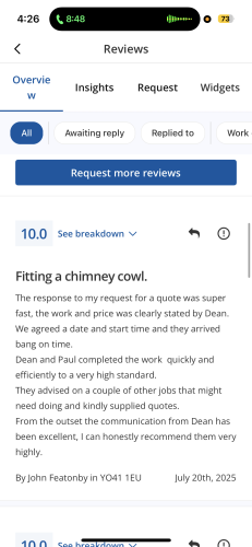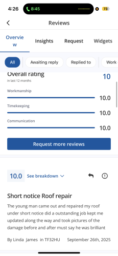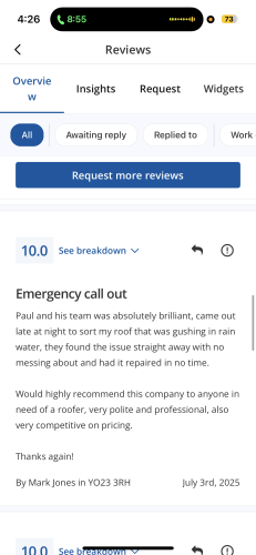 Absolutely fantastic company. Replied to my messages quickly, very reasonably priced and came out the next day to fix the guttering on my home. Excellent communication… as is sometimes the case and can’t be helped Dean got held up on the job prior to mine….instead of just turning up late he immediately contacted me and let me know and asked if it was ok to come a bit later. Not only is this excellent business practice, it just showed what a nice polite young man Dean is. He got the job done with ease and I will be keeping his number as a go to for future jobs. Highly recommend!!