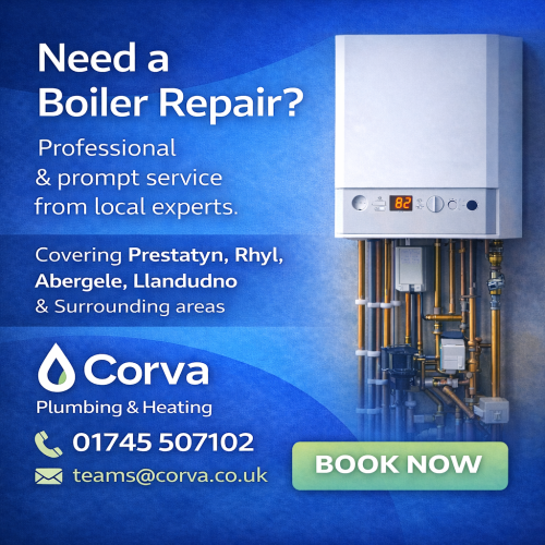 Corva Plumbing & Heating Ltd is a Gas Safe registered company based in Kinmel Bay, covering Prestatyn, Rhyl, Abergele, Llandudno and surrounding areas across North Wales.