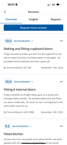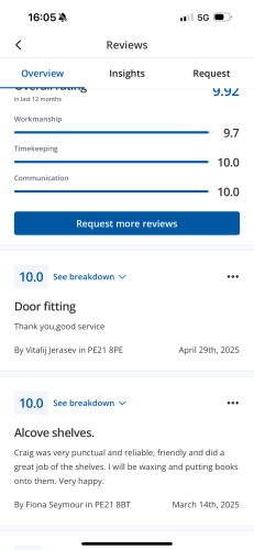 About Our Reviews: The reviews contained on this page have been submitted by users of our service who have had a job completed by a verified trade member. We operate a closed loop feedback system which protects our users from fake reviews. To understand more about our reviews process, please visit our Reviews Policy.