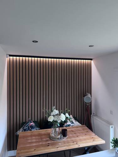 We cover all aspects of electrical work including lighting solutions, full and partial rewires, consumer unit upgrades, socket and switch installations, fault finding, and more. We also support home improvement projects, offering custom installs such as feature lighting, walk-in wardrobes, media walls, and kitchen completions.
