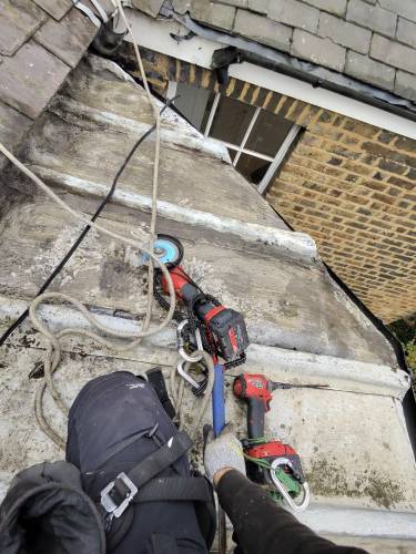Our work includes roof repairs, slipped tiles, flashing installation, gutter repairs and metal roofing. Many projects are completed using professional rope access techniques, which allow safe access to difficult areas and often remove the need for scaffolding.