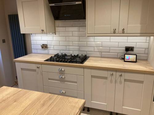 I’ve been tiling for 10 years I’m working alone now so small tile jobs are not an issue please feel free to call me for a quote around the Manchester area…