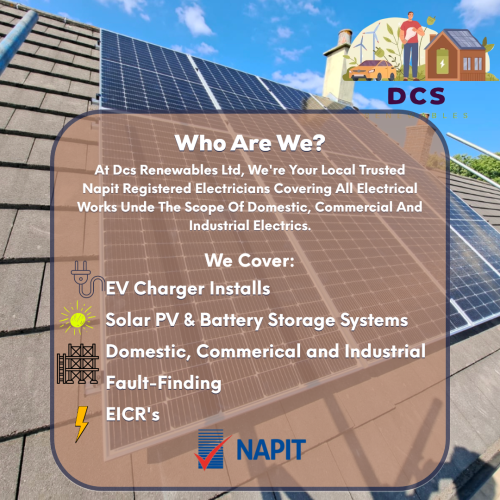 DCS Renewables Ltd is your trusted NAPIT registered electrical contractor, specialising in a wide spectrum of electrical services encompassing commercial, domestic, and industrial projects. With a wealth of experience exceeding 30 years, our team of dedicated professionals brings a wealth of expertise to every project we undertake.