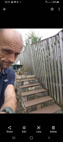 30 years plus working Designing gardens outdoor areas. Building in stone dressing dry stone walls ect.