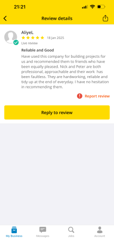 All reviews are submitted by homeowners who have had work completed as part of using our service. Whilst every effort is made to verify and check reviews, we ask all homeowners to conduct their own research and follow our Homeowner Checklist before hiring.