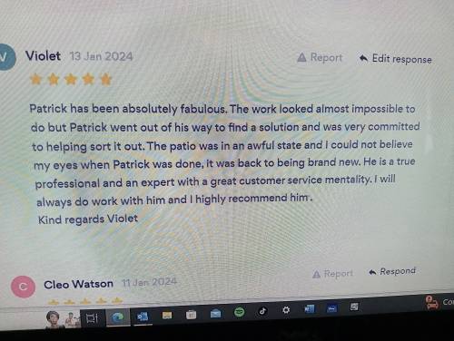 Excellent service, Patrick went out of his way to help and fab job on our garden. Thank you!