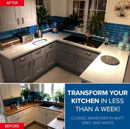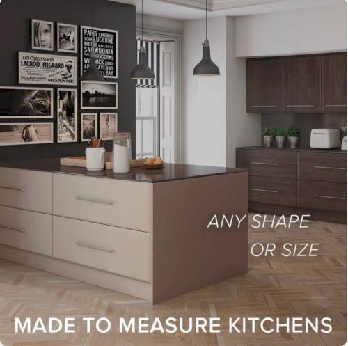 Our bespoke doors are all made to measure, with vast choice of styles and colours as well as accompanying trims, plinth, cornice, pelmet, panels. We also supply and fit worktops, appliances, sink and taps. Its an all in one service - you can have a little or as much done as you want or your budget stretches to.