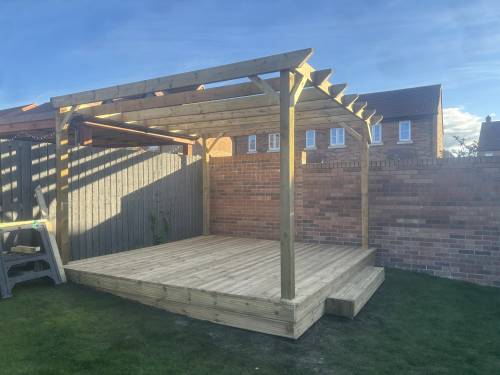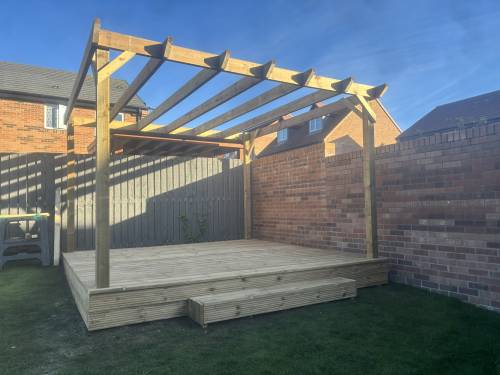 Paito, fencing, decking, sleepers, curbing, carports pergolas, gates, trellis, turfing, artificial turf, flagging, block paving, tarmac, steps raised patios, Drainage gravelling, concrete bases foundations, tree services