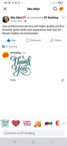 EP Building are a select team of professional tradesman that offers excellent service for an affordable price.We carry out a full range of services from small repairs to large Renovation Projects. Much of our work comes from recommendations, referrals and word of mouth & we also have customer feedback