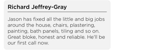 There are currently no reviews for this tradesperson. If you've had a job completed by them in the past, leave a review below.